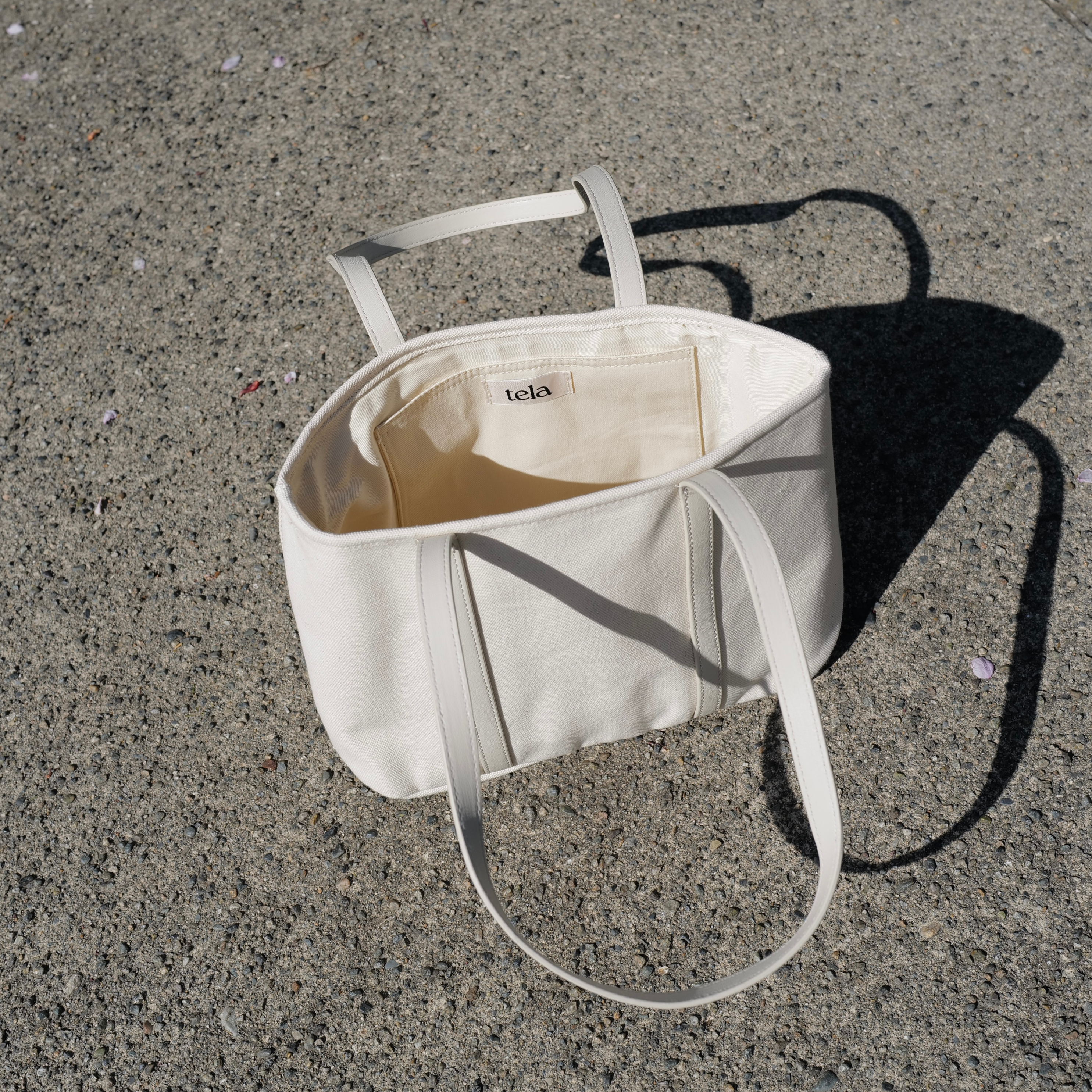 Meet the Everyday Tote in black, this canvas tote bag is crafted from durable cotton canvas with apple leather straps for a refined yet minimalist look. Designed to go with everything, it features a removable pouch with apple leather card slots, perfect for keeping your essentials organized on the move. Your new go to bag - for workdays, weekends, and everything in between.
